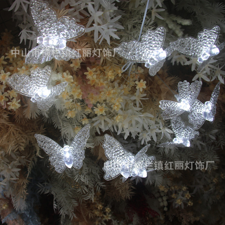 Dekorasi langit-langit pernikahan bunga akrilik disikat kupu-kupu gantung tali jalan memimpin lampu pemandangan pernikahan alat peraga tata letak gaya pastoral