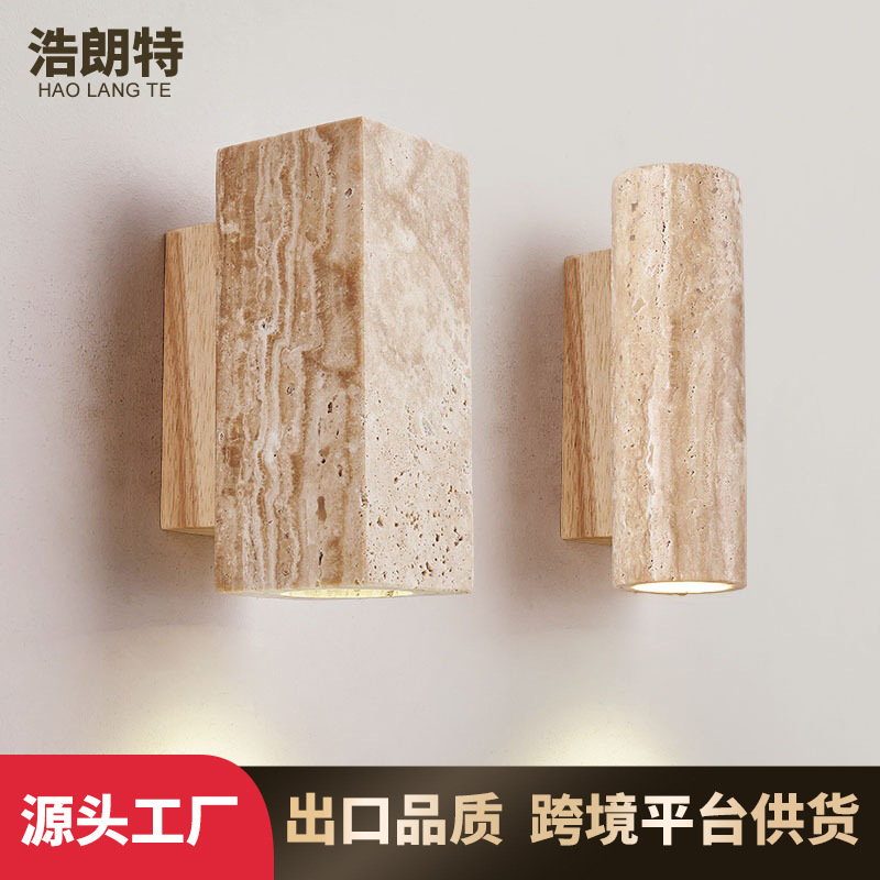 Lampu dinding batu gua kuning bergaya Jepang untuk kamar tidur, samping tempat tidur hotel, kayu krem desainer Nordik, koridor, lorong, gaya krem