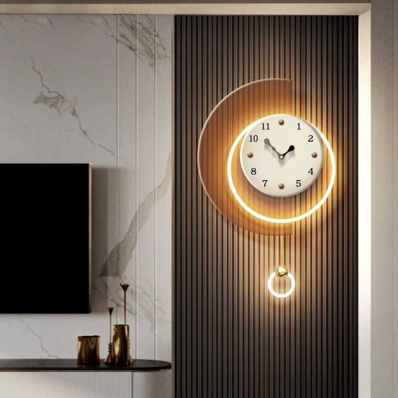 Lampu dinding jam kamar tidur, lampu depan mewah kreatif ruang tamu latar belakang lampu dinding teknologi pemodelan rasa dekorasi pengisian daya tanpa kabel