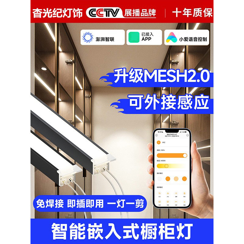 智能款免焊接橱柜灯嵌入式灯书柜酒柜灯厨房柜子层板灯led灯带