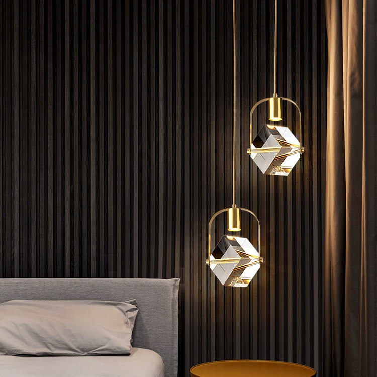 Lampu gantung kristal tempat tidur, lampu gantung kecil modern untuk kamar tidur, lampu kristal latar belakang TV