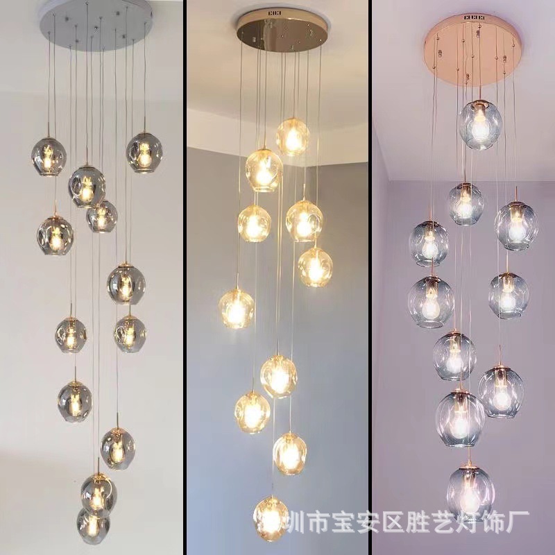 Post-modern sederhana tangga lampu gantung panjang Nordik kreatif kepribadian dupleks villa berputar kaca tangga lampu gantung