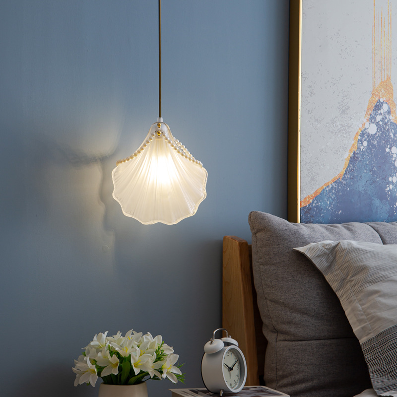 Lampu gantung, cahaya mewah untuk belajar samping tempat tidur kecil lorong bar lampu modern sederhana kepala tunggal garis gantung cangkang mutiara