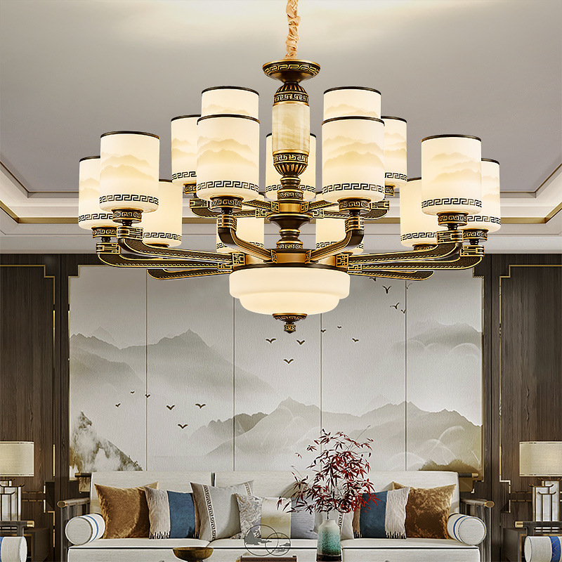 Lampu gantung giok gaya Tiongkok, lampu ruang tamu dupleks bangunan Villa modern minimalis restoran bangunan tengah hotel lobi