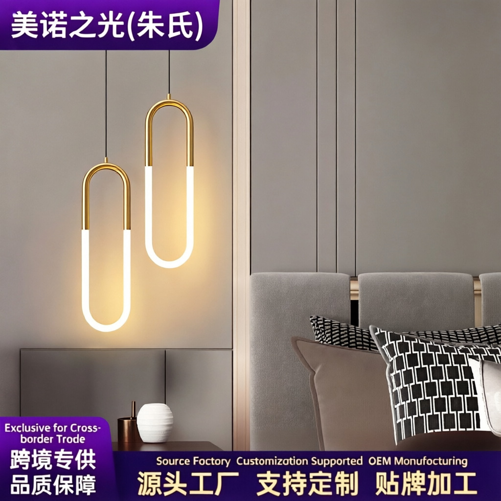 Lampu gantung bentuk U, Nordic minimalis mewah internet selebriti garis panjang modern minimalis ruang tamu latar belakang lampu dinding