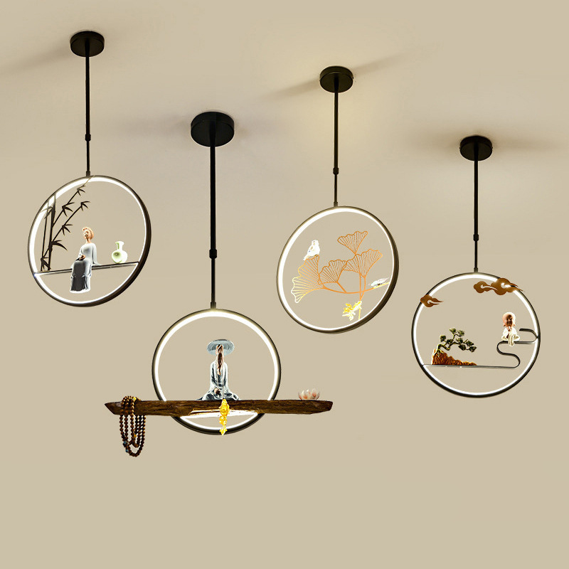 Tempat lilin kecil Zen Tiongkok, lampu gantung kecil kepala tunggal, belajar kecil, ruang teh Tiongkok led kreatif gaya Tiongkok