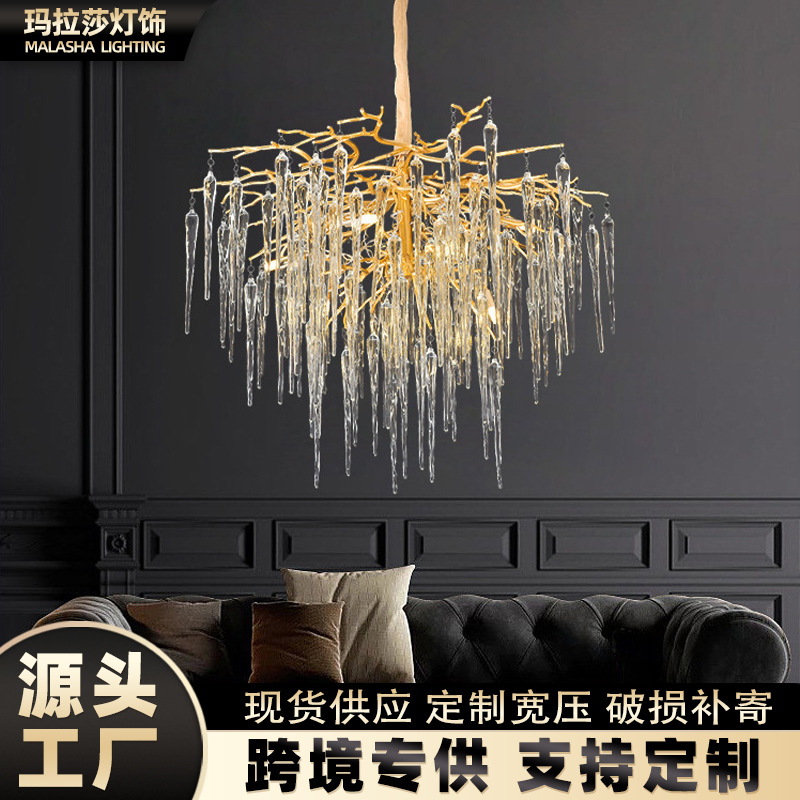 Lampu gantung kristal cabang es, lampu hias mewah modern ruang makan Villa Hotel seni cabang tempat lilin