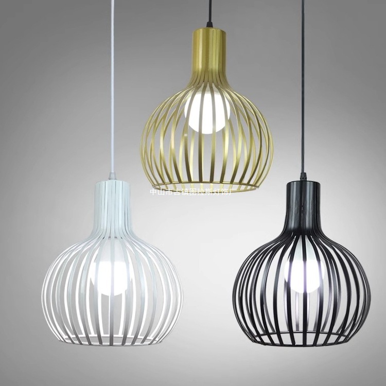 Lampu Gantung Sangkar Burung Kreatif Lampu Gantung Kawat Besi Unik Satu Kepala Bar Restoran Lampu Gantung Seni Besi Hitam Putih Tiga Kepala