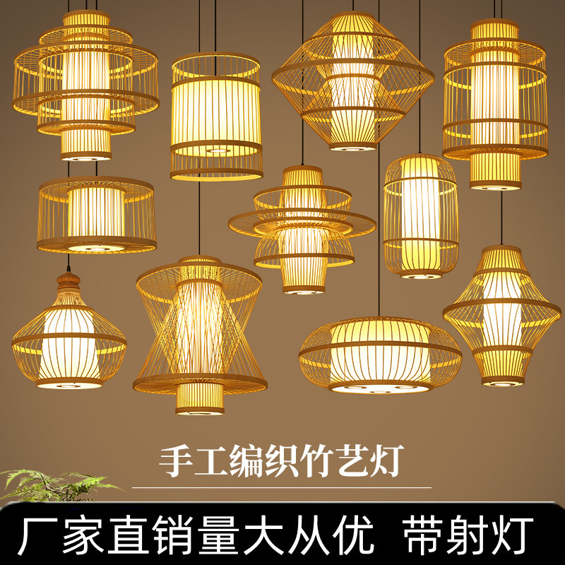 Lampu gantung gaya Jepang anyaman bambu gaya Tiongkok baru rumah teh Zen restoran pot panas dengan lampu sorot Restoran tempat tidur lentera & sarapan lampu rotan