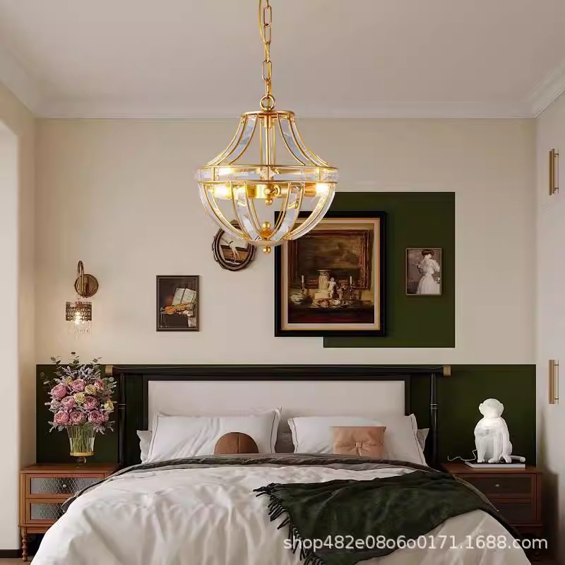Lampu gantung kamar tidur, lampu gantung kecil selebritas Internet, desainer kreatif kuno Tengah, lampu gantung samping tempat tidur, gaya krim