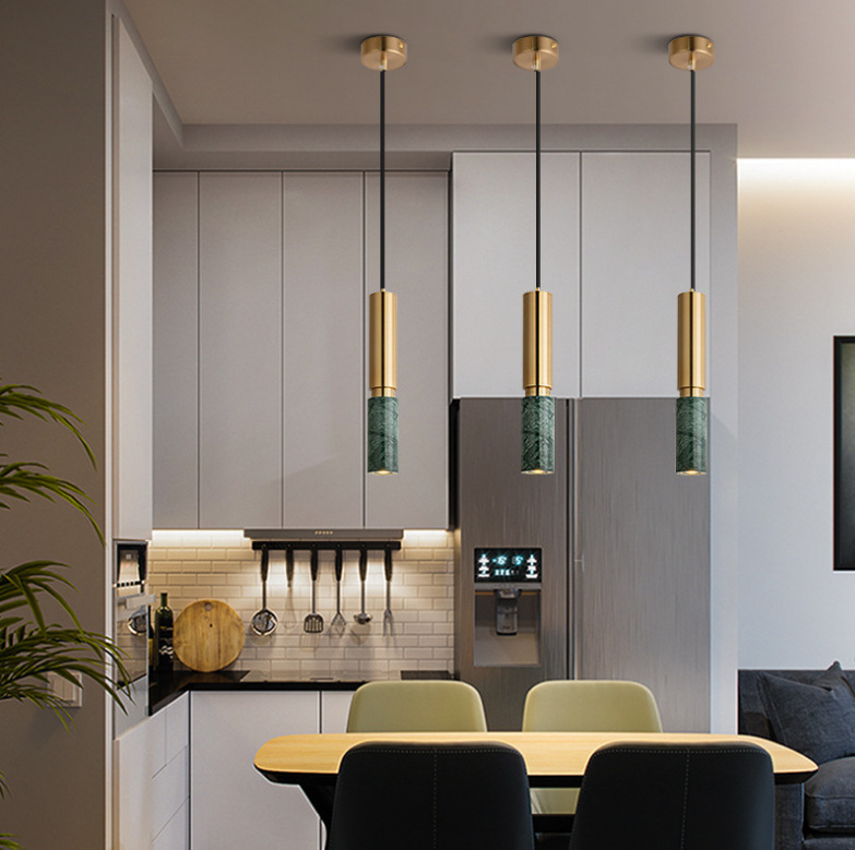 Lampu Gantung Kecil Kepala Tunggal Marmer Mewah Sederhana Nordik Lampu Seni Besi Kepala Tempat Tidur Bar Meja Meja Depan Restoran Unik
