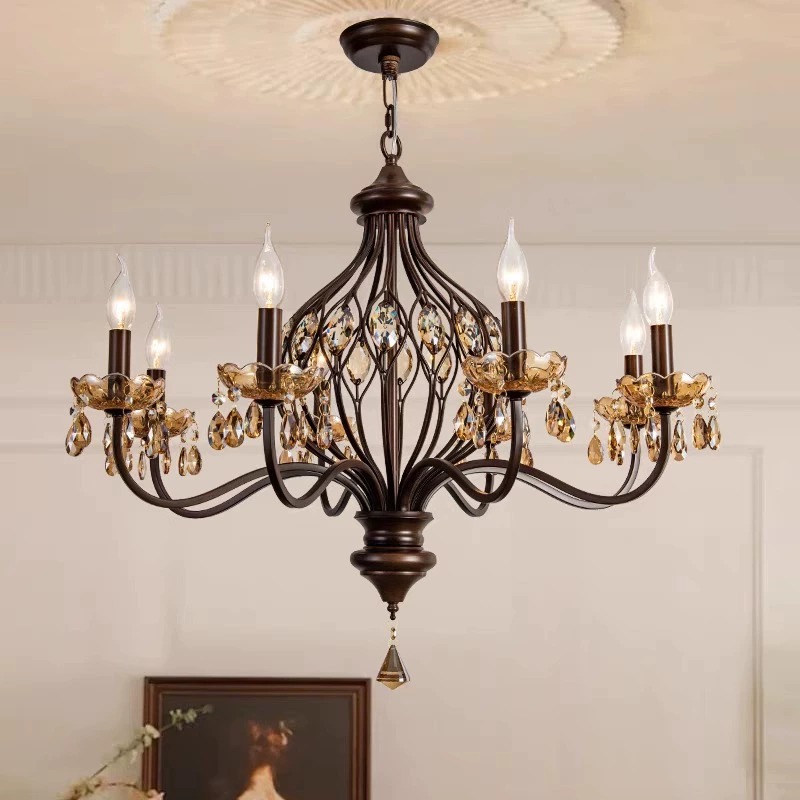 Lampu Gantung Retro Gaya Amerika Lampu Ruang Tamu Kristal Gaya Perancis Lampu Lilin Gaya Pertengahan Lampu Ruang Makan Lampu Hias Kamar Tidur Warna Kayu Kenari