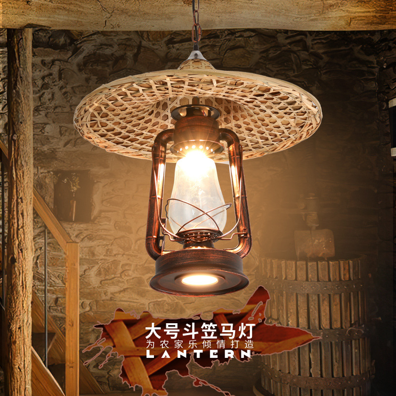 Lampu rotan bambu kreatif, lampu gantung rotan bambu kreatif, lampu pertanian, topi jerami B & B negara, toko barbekyu, restoran, pot panas, lentera Retro