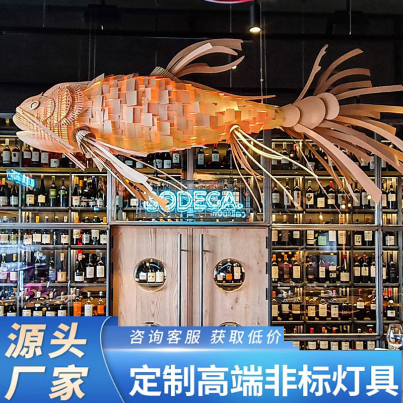 Lampu seni bentuk ikan lampu gantung baru Cina Asia Tenggara restoran katering pot panas Jepang toko memasak teknik ikan kayu pemodelan hari