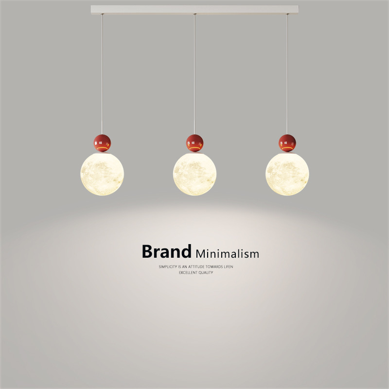 Lampu ruang makan tiga kepala, lampu tempat lilin kecil gaya krim gaya ruang makan panjang kreatif bulan gaya diam