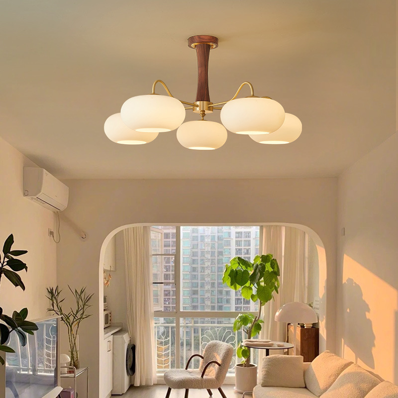 Lampu Gantung Walnut Pertengahan Lampu Kamar Tidur Lampu Utama Ruang Tamu Retro Gaya Amerika