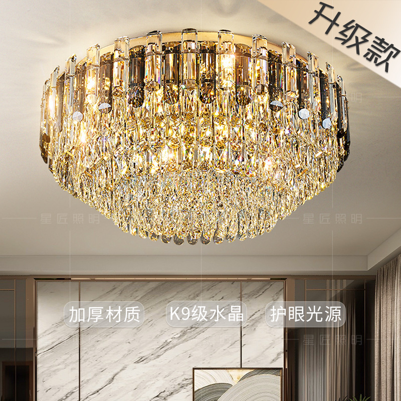 Lampu Ruang Tamu Xinxing Lampu Kamar Tidur Restoran Lampu Kristal Pelindung Mata Bentuk Bulat Kemewahan Ringan Lampu Atap Apartemen Lantai Ganda Tinggi