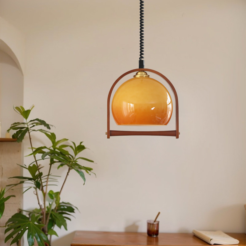 Lampu Gantung Restoran Lampu Meja Makan Kaca Dapat Diteleskopik Perancang Kayu Solid Kreatif Gaya Jepang Modern Sederhana