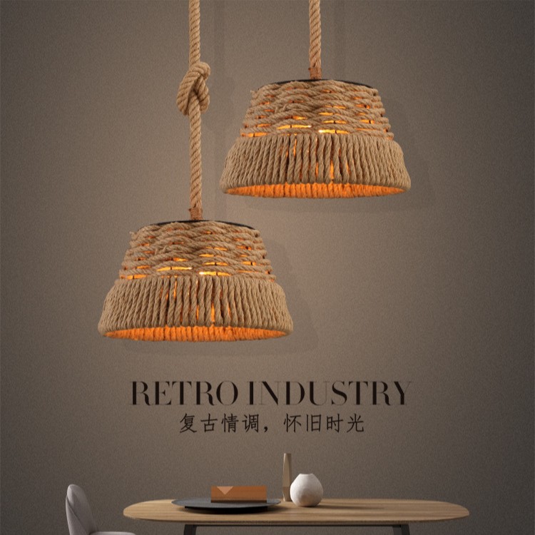 Lampu Gantung Tali Rami Retro Lampu Kepala Tunggal Toko Pakaian Bar Kafe Lampu Gantung Jendela Asap Berongga Gaya Industri Besi