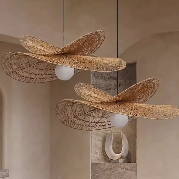 Lampu gantung gaya Jepang, lampu gantung retro, tali rami rotan, ruang teh Zen China, kamar tidur B & B