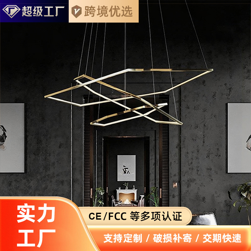 Lampu utama ruang tamu post-modern berbentuk heksagonal dari baja tahan karat, lampu gantung geometris kreatif baru 2024, minimalis modern.