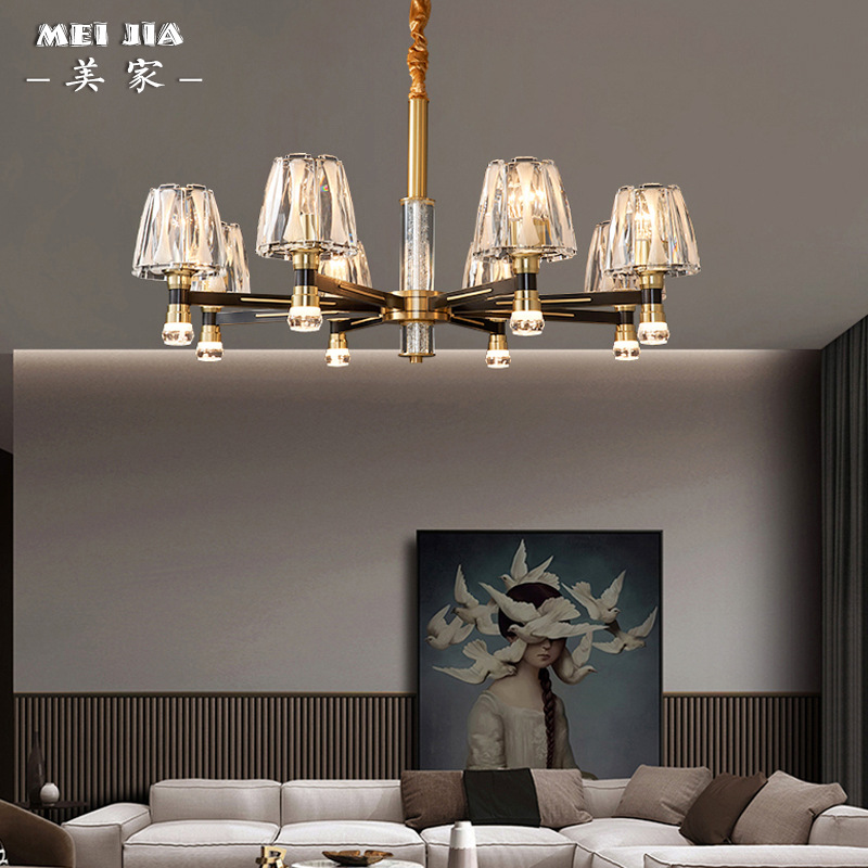 Lampu gantung kristal Modern mewah, lampu gantung tembaga ruang tamu ruang tamu restoran, vila Amerika atmosfer restoran, lampu kamar tidur