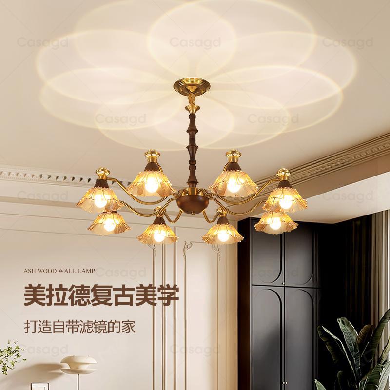 Lampu Gantung Ruang Tamu Model Perancis Lampu Suasana Cahaya dan Bayangan Kamar Tidur Lampu Proyektor Restoran Kelopak Retro Gaya Amerika casagd