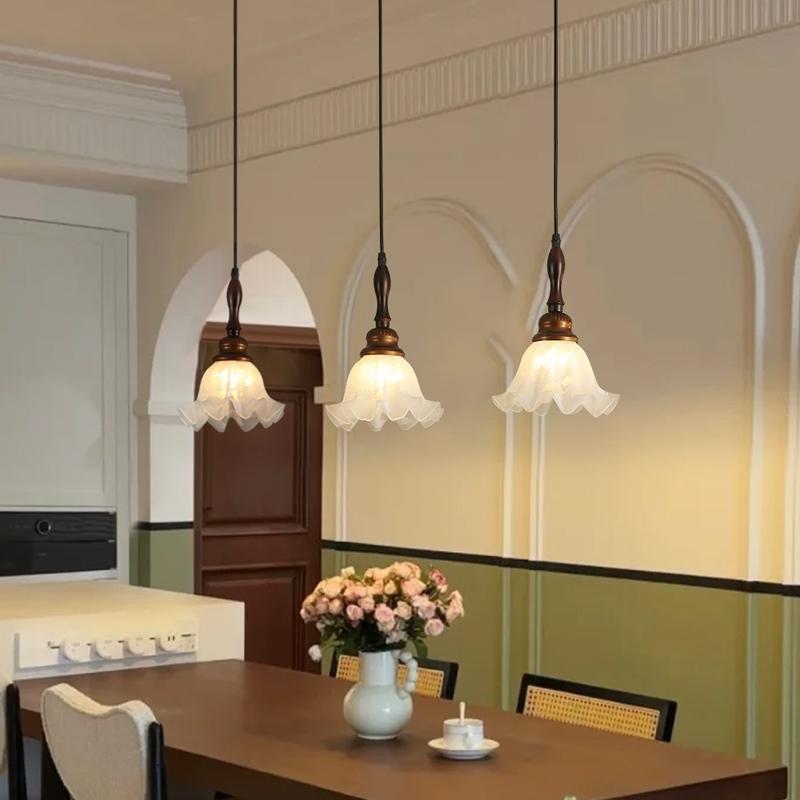 Lampu Gantung Restoran Gaya Pertengahan Tiga Kepala Piring Panjang Karet Kayu Solid Meja Bar Garis Gantung Retro Kamar Tidur Kepala Tempat Tidur Lampu Bunga Anggrek