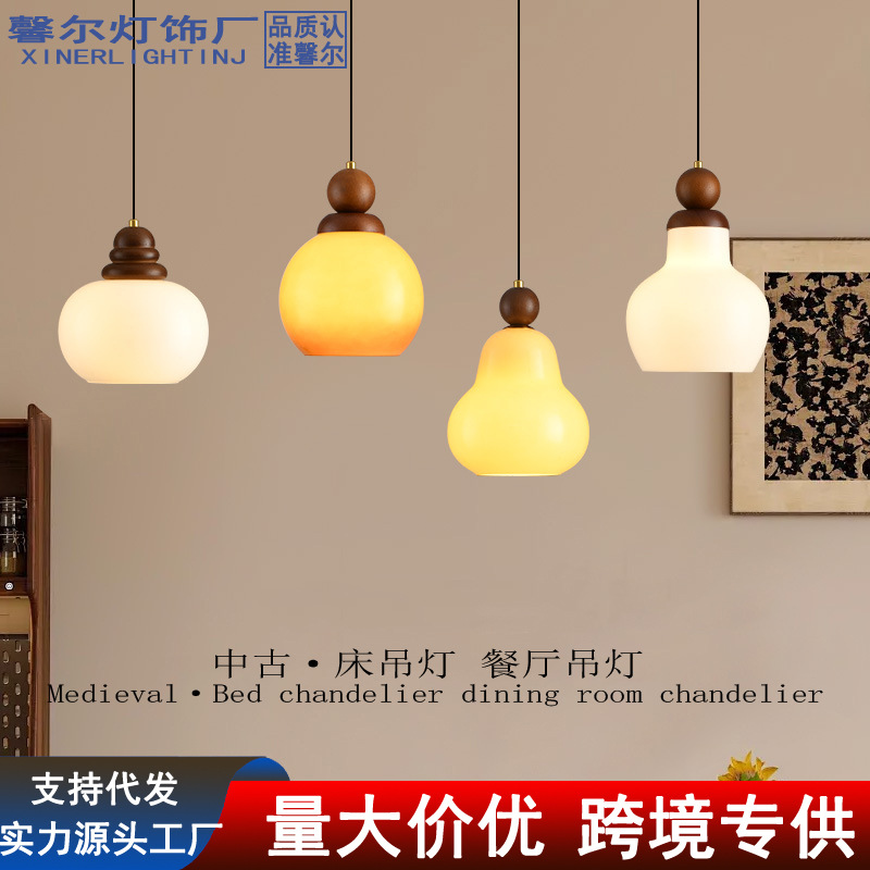 Lampu Gantung Tempat Tidur Kamar Tidur Gaya Krim Retro Amerika Pertengahan Lampu Hiasan Kayu Solid untuk Restoran Bar Ruang Belajar Hotel