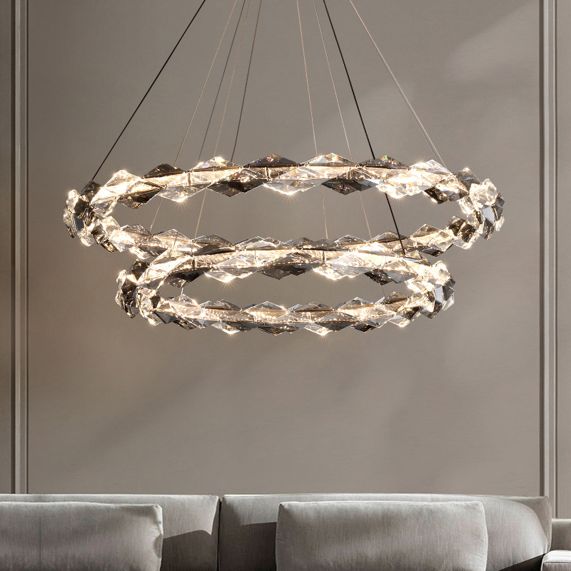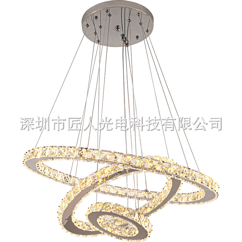 Lampu gantung kristal bundar baja tahan karat, lampu gantung kristal kreatif led lintas batas modern minimalis ruang tamu kamar tidur ruang makan