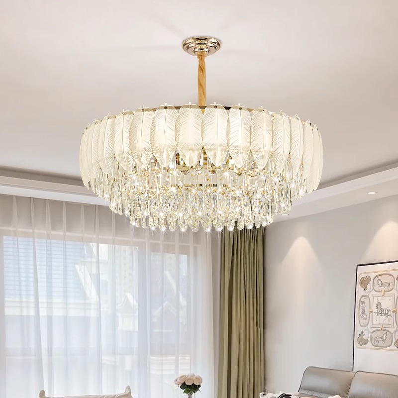 Lampu Gantung Ruang Tamu Kristal Mewah Ringan Lintas Batas Kelas Tinggi Lampu Gantung Ruang Makan Elegan Gaya Perancis Lampu Bulu Kamar Tidur Utama Krim