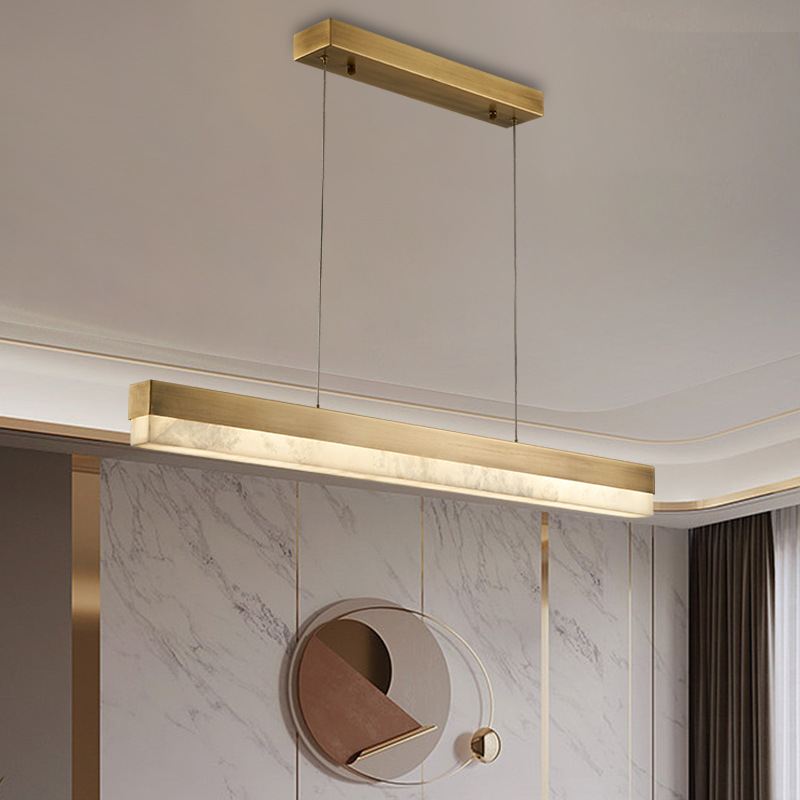 Lampu gantung Restoran tembaga gaya Tiongkok baru lampu strip panjang minimalis modern lampu belajar ruang teh tempat lilin marmer Spanyol