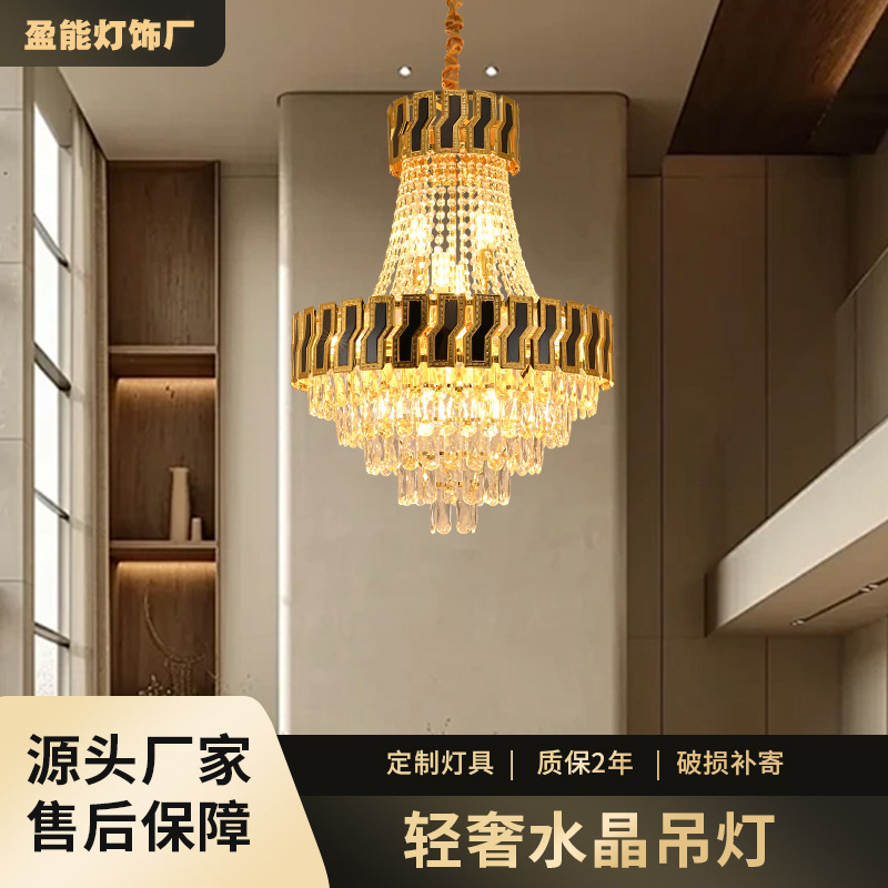 Lampu Gantung Ruang Tamu Lantai Retro Lampu Gantung Panjang Tangga Kristal Mewah Modern Gaya Eropa Utara Lampu Gantung Ruang Makan Villa Hotel