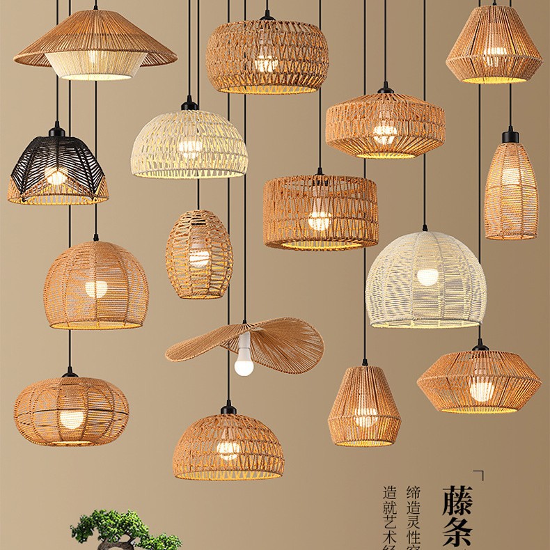 Lampu Gantung Seni Rotan Gaya Jiji Lampu Restoran Restoran Hot Pot Sederhana Lampu Gantung Gaya Tiongkok Baru Tempat Tidur dan Tidur Retro Gaya Jepang Tenun Buatan Tangan