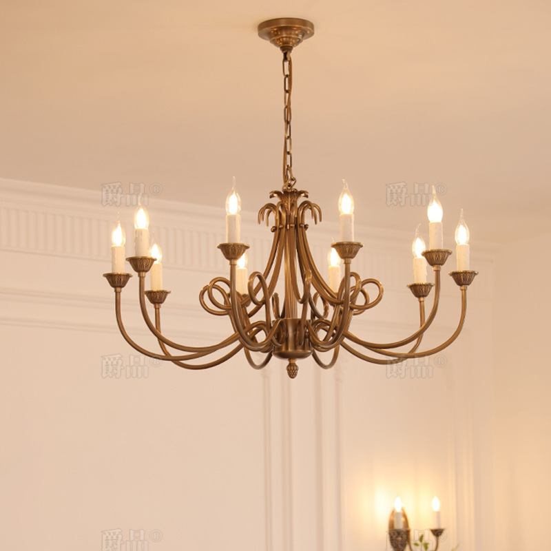 Lampu gantung lilin ruang tamu perunggu dalam, lampu Vila vintage lampu ruang makan kamar tidur lampu tangga lampu Tengah dan kuno gaya prancis