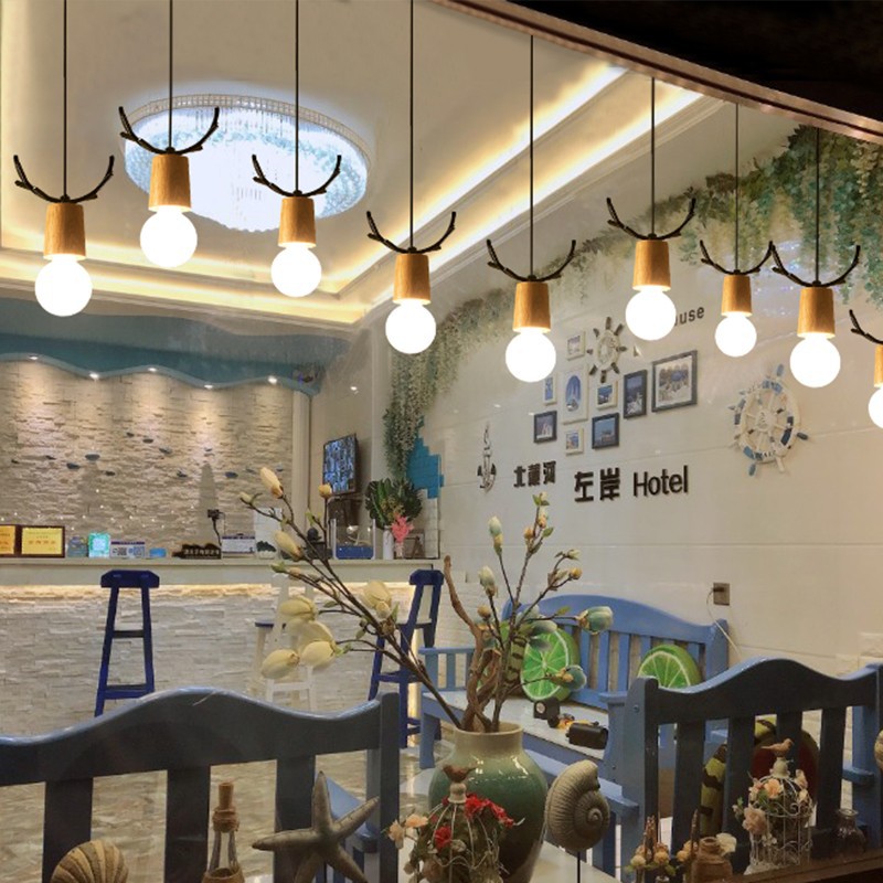 Lampu gantung kecil kepala rusa Nordic, lampu retro kreatif restoran kedai kopi pakaian jendela toko modern besi monyet