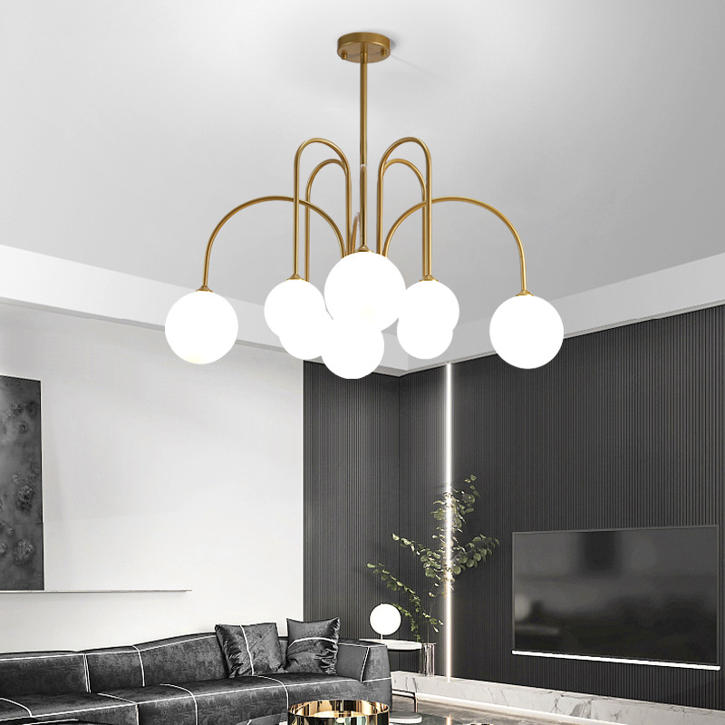 Nordic dekorasi rumah modern lampu gantung ruang tamu cat besi kaca putih susu lampu molekul kacang ajaib produsen pencahayaan kota kuno