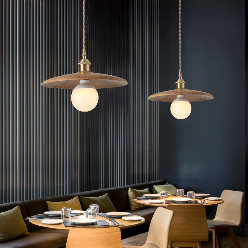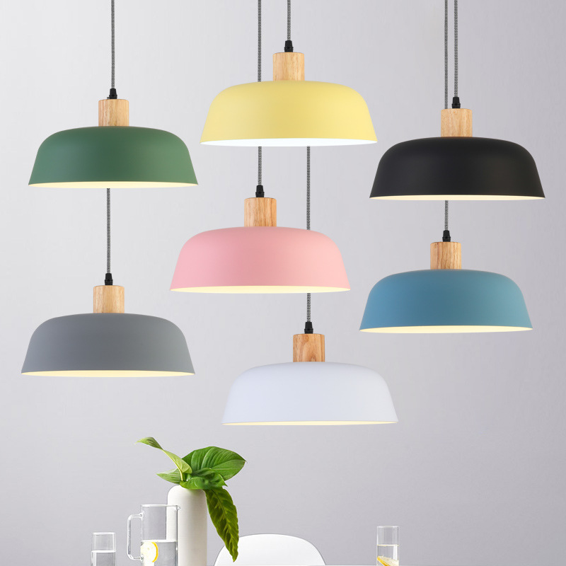 Lampu tempat lilin kantor, lampu gantung kayu kepala tunggal Nordic sederhana gaya senyap macaron Bar Cafe hotel restoran