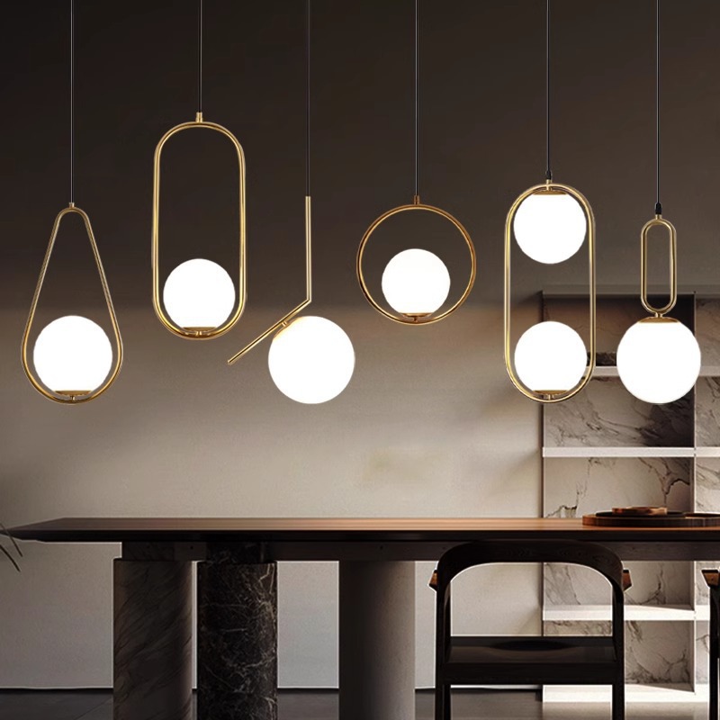 Lampu gantung restoran Nordic, lampu bar kamar tidur minimalis modern ruang makan kepribadian kreatif lampu gantung kepala tunggal