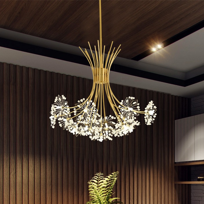 Lampu gantung ruang makan dandelion Nordic, lampu ruang tamu kamar tidur rumah nyaman lampu ruang makan komersial lampu kristal sederhana mewah