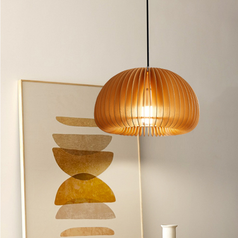 Lampu gantung labu gaya Jepang Nordic, lampu kayu padat ruang makan lorong lorong kamar tidur