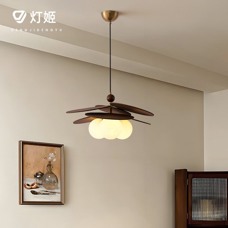 Pola Kayu Model Prancis Lampu Gaya Krim Zhongshan Tengah Lampu Ruang Tamu Kamar Tidur Sederhana dan Tenang Kamar Restoran Lampu Gantung
