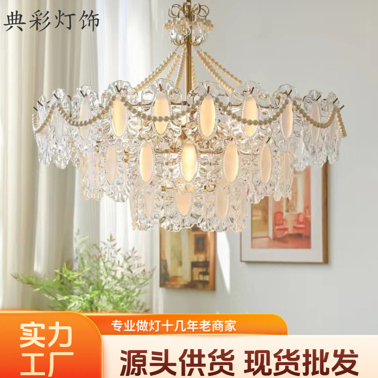 Lampu Ruang Tamu Lampu Gantung Ruang Tamu Model Baru Lampu Utama Ruang Tamu Gaya Pertengahan Lampu Pelindung Mata Restoran Kayu Solid Retro Gaya Prancis 194