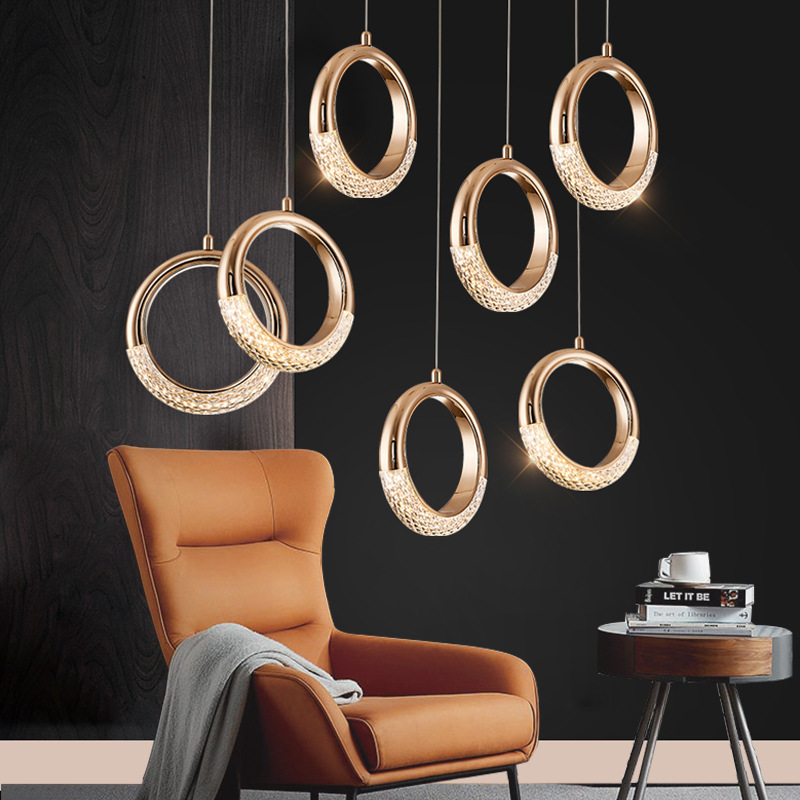 Lampu gantung Nordik untuk ruang tamu, lampu mewah elegan dari kaca, lampu modern sederhana kreatif berbentuk cincin melingkar untuk ruang makan, kamar tidur, perlengkapan pencahayaan lintas batas