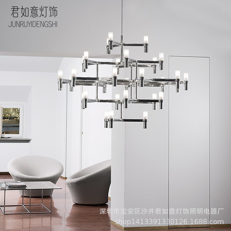 Lampu gantung berbentuk tidak beraturan yang kreatif untuk ruang tamu minimalis bergaya Nordik dengan langit-langit tinggi, lampu gantung tangga lobi vila.