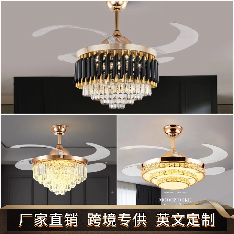Lampu Kipas Tak Terlihat Kristal Ruang Makan Ruang Tamu Lampu Kipas Gantung Model Baru Suasana Kelas Atas Rumah Mewah Ringan Lampu Zhongshan Lintas Batas