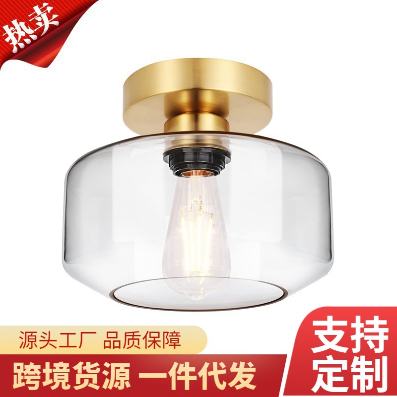 Lampu langit-langit kaca bulat gaya Eropa lintas batas lampu pintu masuk kamar tidur lorong tangga transparan toko kopi lampu Bar