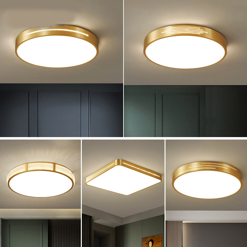 Lampu langit-langit LED Semua tembaga, lampu langit-langit mewah bulat Amerika ultra-tipis untuk kamar tidur Nordik ruang tamu lorong koridor