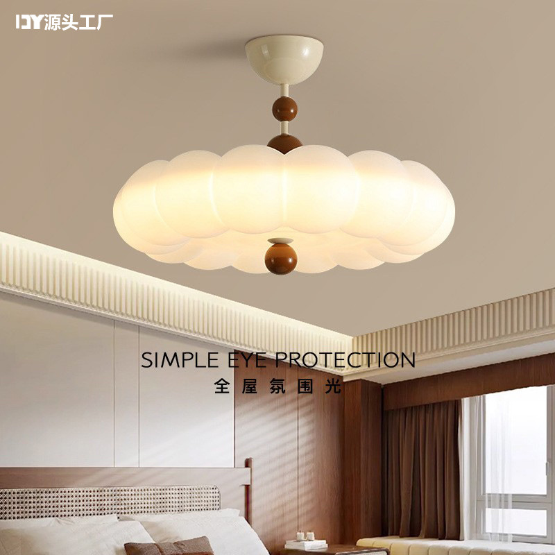 Lampu langit-langit pelindung mata angin krim spektrum penuh sederhana suasana ruang tamu kamar tidur lampu utama lampu langit-langit led paket kombinasi