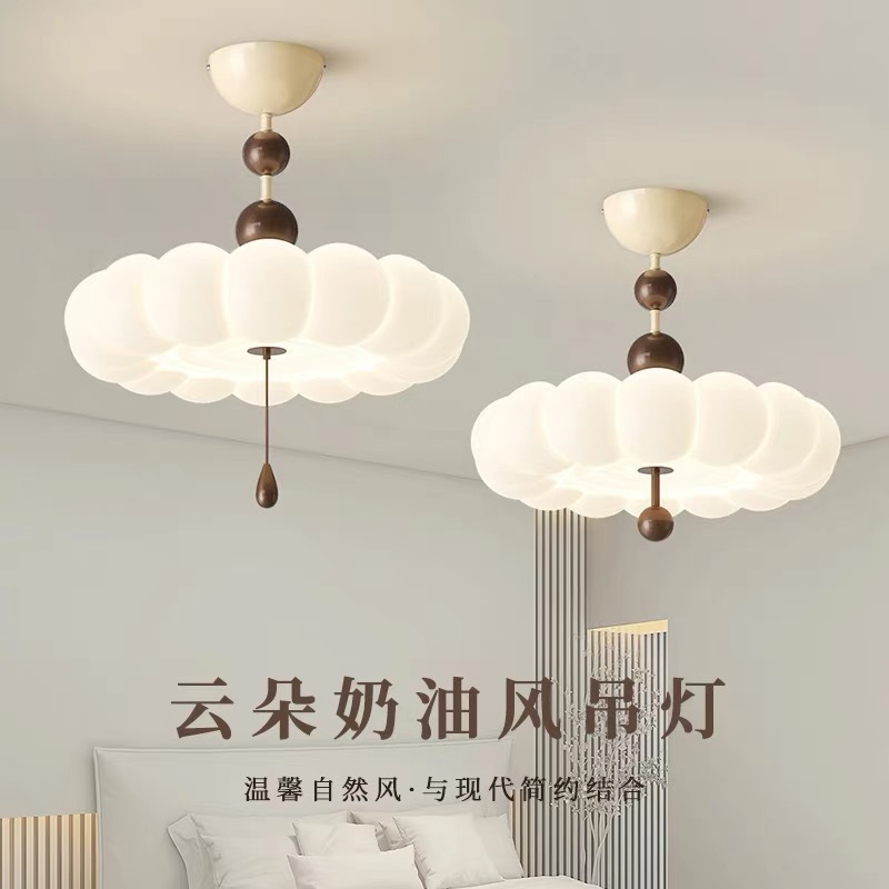 Lampu gantung gaya krim kamar tidur, lampu langit-langit spektrum penuh ruang makan led awan kreatif lorong sederhana